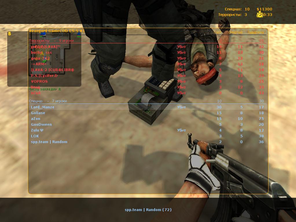 | Тут будет выкладывать разные скрины, например таблицы с результатами в конце игры, там где вы были очень круты и были на первом месте. (а разве не так?) ну или просто какие-нибудь приколы про контру... Также кидайте демки своей игры. Это интересно. --------------------------------------------- Начну я. Развлечение с ботами... Настоятельно рекомендую почитатать текстовое сообщение NGhost'a на скрине, обратить внимание на то, за кого он играет и какой счёт по раундам.... Заметте- это боты на normal'е